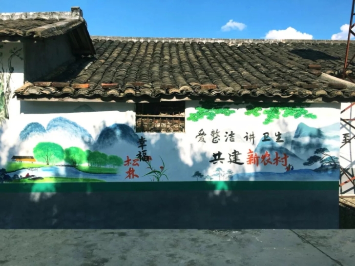 ▲松林村的中國風(fēng)手繪壁畫