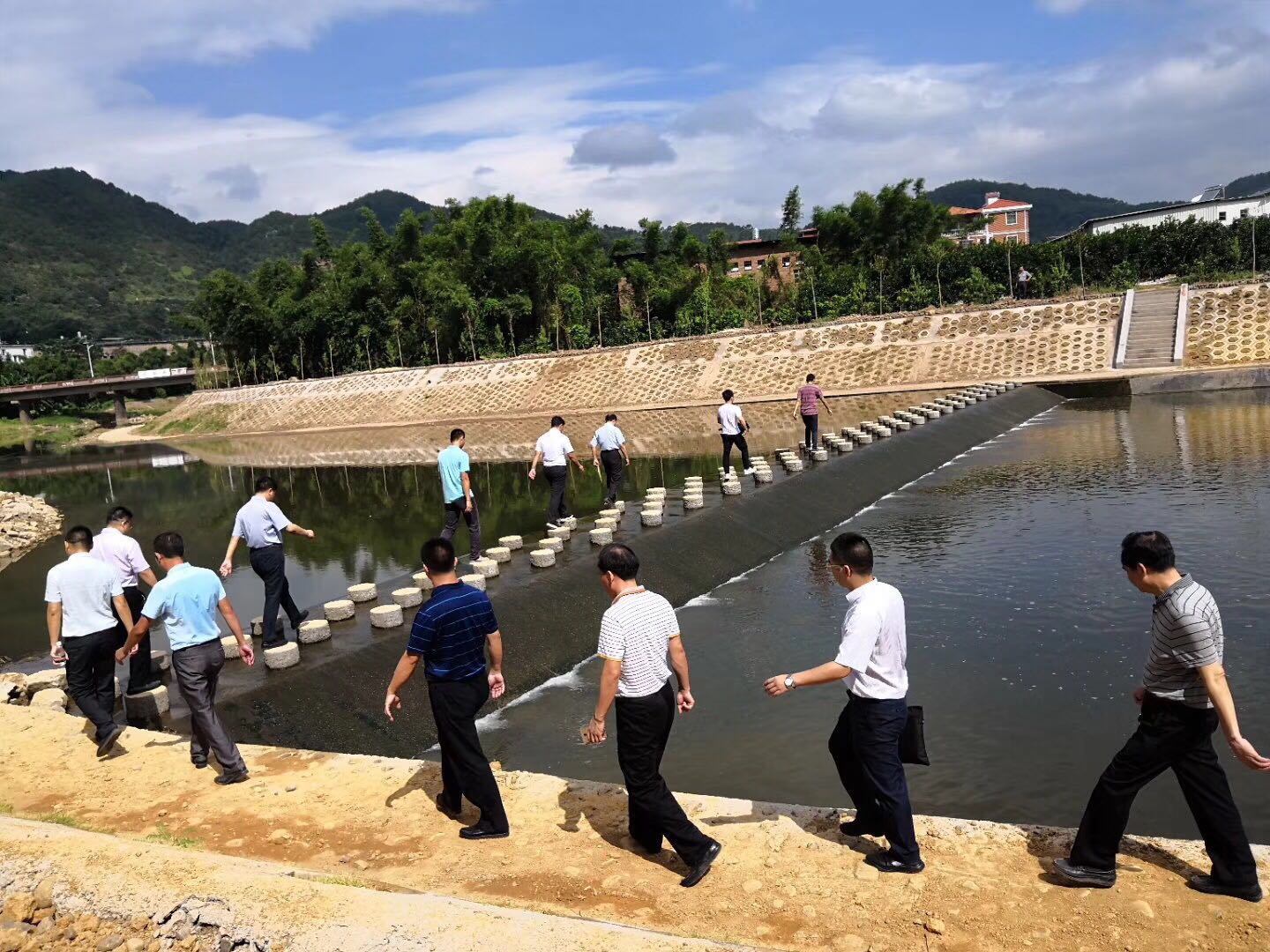 自進(jìn)入6月份以來,梅縣地區(qū)頻繁多雨,導(dǎo)致現(xiàn)場施工非常困難。已做好基礎(chǔ)松源河過河陂,由于雨水的沖刷導(dǎo)致基礎(chǔ)損壞。為了保證施工進(jìn)度能夠按照計劃正常推進(jìn),項目部結(jié)合工期、安全、質(zhì)量等因素,排出了詳細(xì)的每日計劃表,日夜加班加點,克服多雨天氣帶來的不利影響,扭轉(zhuǎn)了雨天工期滯后的被動局面。